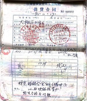 發(fā)展歷程 1983年 江蘇省泰縣蘇陳五金機(jī)械廠成立 1985年 更名為江蘇省泰縣電爐配件廠 2008 江蘇長(zhǎng)冶科技有限公司成立 2020 江蘇長(zhǎng)冶科技有限公司姜堰分公司成立 1983年泰縣蘇陳五金機(jī)械廠合同 1984年泰縣蘇陳五金機(jī)械廠合同 1985年泰縣電爐配件廠合同