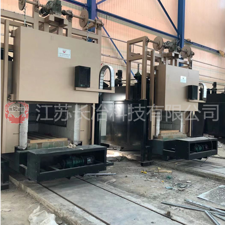 本型電加熱臺(tái)車(chē)爐由固定支撐底腳、爐殼升降驅(qū)動(dòng)裝置,活動(dòng)爐殼、爐襯、加熱器、風(fēng)循環(huán)導(dǎo)流系統(tǒng),爐門(mén)及升降機(jī)構(gòu)、爐門(mén)氣動(dòng)壓緊裝置、臺(tái)車(chē)及行走牽引機(jī)構(gòu)、電氣控制系統(tǒng)等組成。